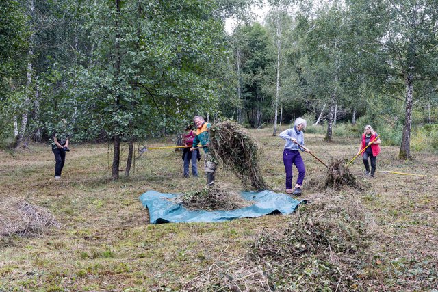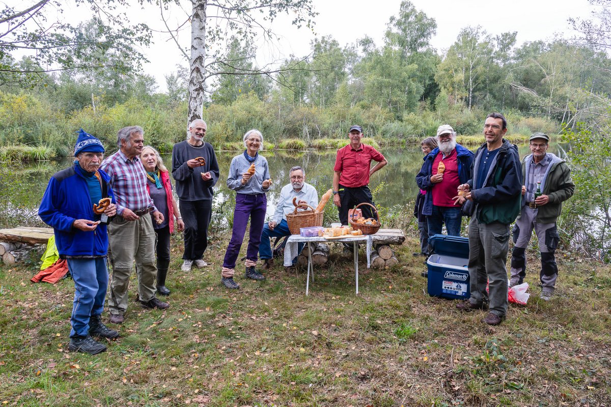 unsere Mähaktionen sind zum Ende des Sommers planmäßig erledigt. Am 12. September haben wir das Mähgut am Birkenweiher zusammengerecht und mit den Planen herausgezogen. Dreizehn Freiwillige waren dabei. Zur Belohnung gab es die bewährt leckere Brotzeit. Drei Tage später war dann das Perlmuttfalter Grundstück „dran“.
